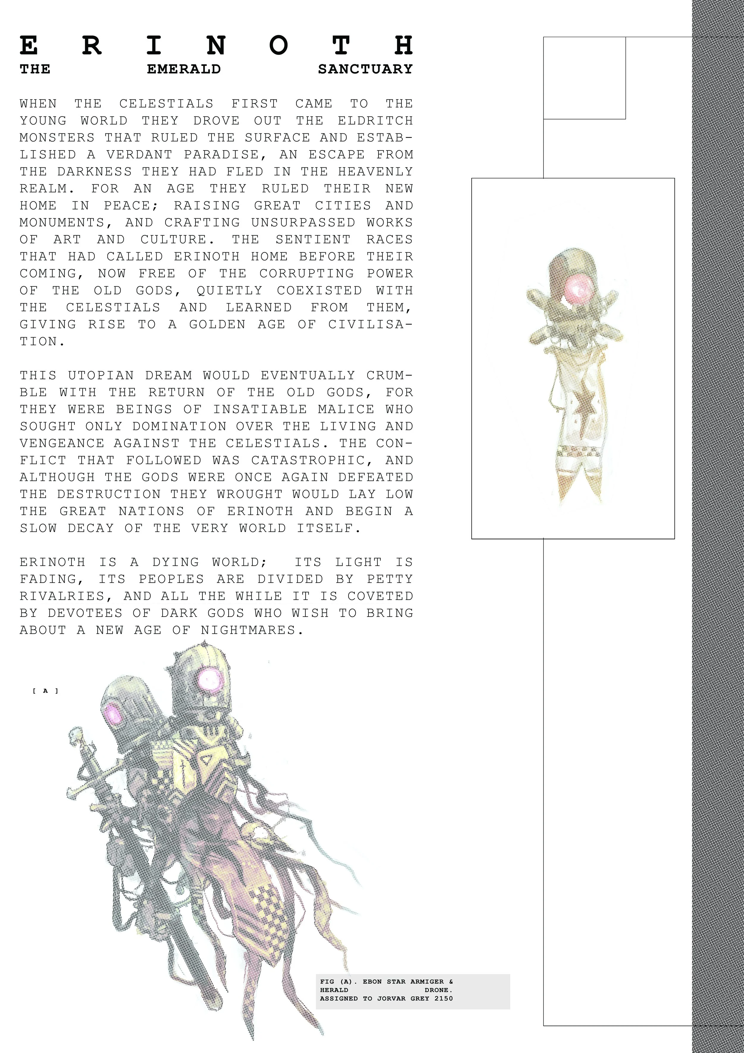 As the game develops we shall be cramming the main rulebook and all of the supplements we release with detailed lore and artwork to help grow Erinoth and push its narrative forward.
