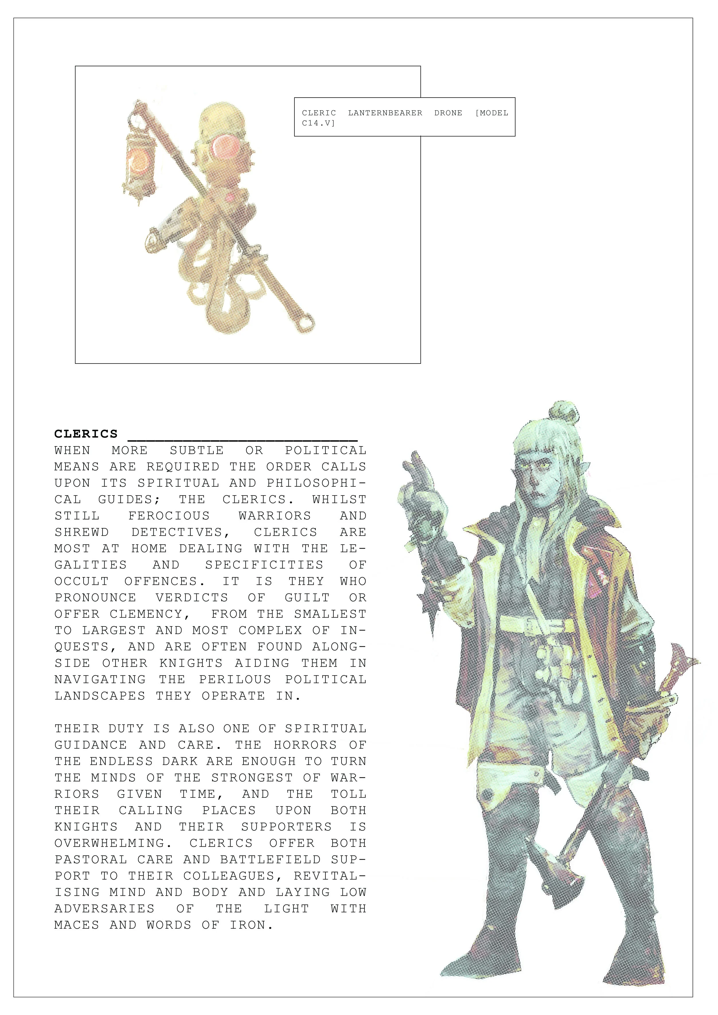 Armed with an esoteric and eclectic selection of unique arms and armour, they are the battered first line of defence against the eldritch and the malign. Operating free from the constraints of politics or race, beholden only to ancient treaties and sacred vows, they have long served the people of the world with little thanks. In fact, their duty is one of such import, and often necessary brutality, that they have long since garnered a grim reputation; feared and shunned by most.